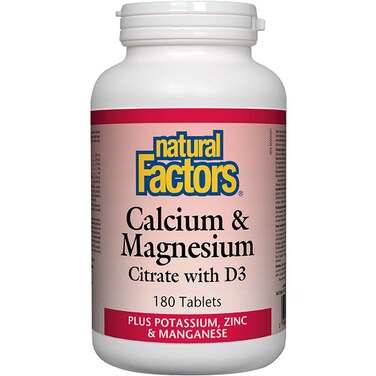 Natural Factors Calcium & Magnesium Citrate With D3 Plus Potassium, Zinc & Manganese 180 Tablets