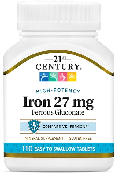 21st Century Iron 27 Mg Ferrous Gluconate Tablets, 110Count