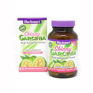 - Bluebonnet’s Skinny Garcinia® Vegetable Capsules are specially formulated with the patented South Asian fruit extract , Garcinia cambogia , known as Super CitriMax® that is standardized to 60% [750 mg] hydroxycitric acid (HCA) and also include L-carnitine , chromium , choline , inositol , vitamin B6 , methionine , plus important electrolytes. When combined with proper diet and exercise , this caffeine-free , non-stimulant formula may help support healthy weight management by burning fat , supporting healthy blood sugar levels already within normal range , and curbing appetite. Available in easy-to-swallow vegetable capsules for maximum assimilation and absorption. Formulated Stimulant-Free with a Combination of Vitamins, Minerals, and Specialty Nutrients for Healthy Weight Management including Super CitriMax® Garcinia Cambogia Fruit Rind Extract ♦ Promotes Healthy Weight Management ♦ 90 Vegetable Capsules, 30 Servings Gluten-Free, Soy-Free, Kosher Certified, Non-GMO, Dairy-Free, Vegan Free of milk, egg, fish, crustacean shellfish, tree nuts, peanuts, wheat and soybeans. Also free of corn, yeast, gluten, barley, rice, sodium and sugar. Guarana Extract, Garcinia Cambogia Powder, Capsule Shell (Hydroxpropyl Methylcellulose) Colour (Caramel) Caffeine, Maltodextrin Take two capsules daily, one before breakfast and one before lunch. Do not exceed stated dose. Drink at least 2 litres of water whilst consuming this product.