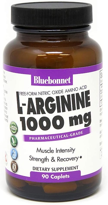 Bluebonnet L-Arginine 1000 mg caplets contain the free-form amino acid L-arginine in its crystalline form from Ajinomoto. Available in easy-to-swallow caplets for maximum assimilation and absorption. Set Contains: 90 Caplets, 30 Servings
