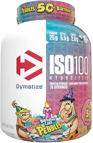Product Description: Product Description Dymatize ISO100 Hydrolyzed Protein Powder, 100% Whey Isolate Protein, 25g of Protein, 5.5g BCAAs, Gluten Free, Fast Absorbing, Easy Digesting, Birthday Cake, 5 Pound Set Contains: 1