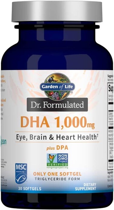 Garden Of Life Dr. Formulated Dha 1,000mg Fish Oil, Lemon, Once Daily 1000mg Dha + Dpa In Triglyceride Form, Single Source Omega 3 Supplement For Ultimate Eye, Brain & Heart Health, 30 Softgels