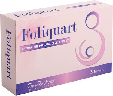 Foliquart contains 450mcg of Folic acid as Quatrefolic, also known as vitamin B9. It is an essential B vitamin required for cell division and the healthy development of red blood cells. Studies show that expecting mothers who consume adequate folate supplementation along with a healthy balanced diet may reduce the risk of birth defects in their babies as it helps the body produce and maintain new cells.