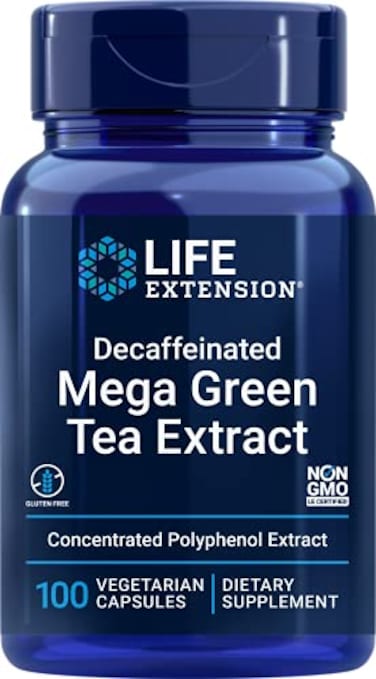 Life Extension Mega Green Tea Extract (98% Polyphenols) Decaffeinated - More Polyphenol Egcg Than The Equivalent Of Several Cups Of Green Tea -Vegetarian, Non-Gmo - 100 Veggi Capsules