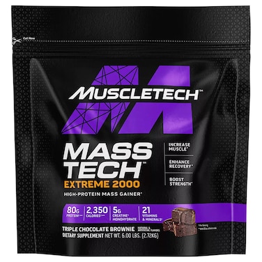 Muscletech Mass Tech Extreme 2000, Triple Chocolate Brownie, 6 Lb