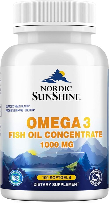 Nordic Sunshine Omega 3 Fish Oil Concentrate 1000mg, 100 Softgels