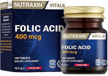 Nutraxin Vitals Folic Acid 400mcg 100 Tabs is a dietary supplement that provides 400 mcg of folic acid per tablet. Folic acid is a B vitamin that is essential for many bodily functions Benefits: Can help prevent neural tube defects in babies. Neural tube defects are birth defects that affect the brain and spine. Folic acid can help to prevent these defects by ensuring that the baby gets enough folic acid during pregnancy.Can help reduce the risk of anemia. Anemia is a condition in which the body does not have enough red blood cells. Folic acid can help to reduce the risk of anemia by helping the body produce red blood cells.Can help improve mood. Folic acid is involved in the production of serotonin, a neurotransmitter that plays a role in mood. Taking folic acid may help to improve mood and reduce the risk of depression.Can help improve cognitive function. Folic acid is involved in the production of new brain cells. Taking folic acid may help to improve cognitive function, such as memory and concentration. how to use: Please see the instructions in the box.