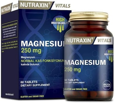 Nutraxin Vitals Magnesium 250mg 60 Tabs is a dietary supplement that provides 250 mg of magnesium per tablet. Magnesium is an essential mineral that plays a role in many bodily functions Benefits: Relieve muscle cramps. Magnesium is a muscle relaxant, so it can help to relieve muscle cramps. This is especially helpful for people who get cramps during exercise or at night.Improve sleep quality. Magnesium helps to regulate the body's natural sleep-wake cycle. Taking magnesium before bed can help you fall asleep faster and sleep more soundly.Reduce anxiety and stress. Magnesium is a natural way to reduce anxiety and stress. It helps to calm the mind and body, and it can also help to improve mood.Improve blood pressure. Magnesium helps to relax blood vessels, which can help to lower blood pressure. This is especially beneficial for people with high blood pressure.Prevent migraines. Magnesium can help to prevent migraines by reducing inflammation and improving blood flow to the brain.Improve athletic performance. Magnesium is important for muscle function and energy production. Taking magnesium can help athletes to perform better and recover from workouts faster. how to use: Please see the instructions in the box.