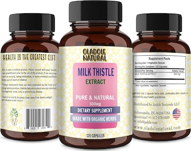 Oladole Natural Milk Thistle, Promotes Liver Health, 500 mg Per Capsule, 120 Count