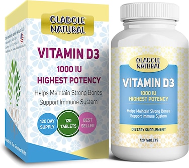 - Oladole Natural Vitamin D3 1000 Iu High Potency, For Healthy Muscle Function, Bone Health, And Immune Support Non-Gmo, 120 Tablets