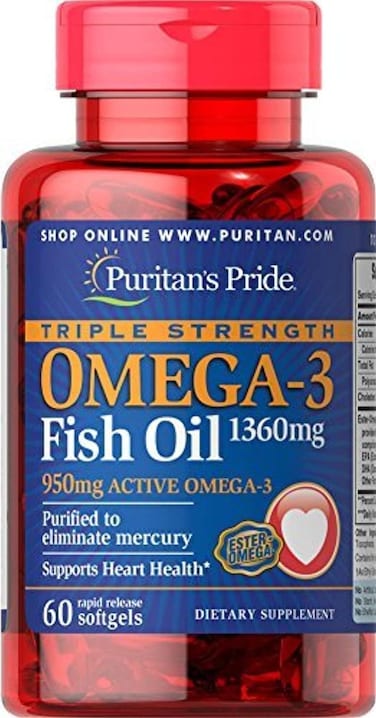 Puritan's Pride Triple Strength Omega-3 Fish Oil 1360mg 950mg Active Omega-3 Softgels 60