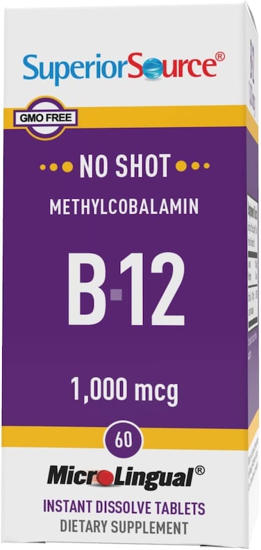 Superior Source No Shot Vitamin B12 Methylcobalamin 1000 Mcg Sublingual Tablets, Methyl B12 Supplement To Increase Energy, Instant Dissolve Under The Tongue, 60 Count (Pack Of 1)
