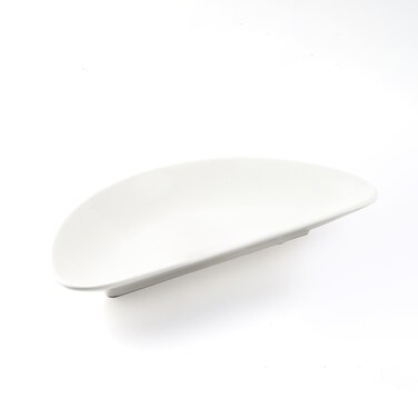 The Porceletta Half Moon collection draws inspiration from the crescent moon, replicating the waning lunar phase through sleek, asymmetric designs such as this flat plate. Crafted from fine porcelain, it exudes a sense a tranquility through beautifully sculpted curves.