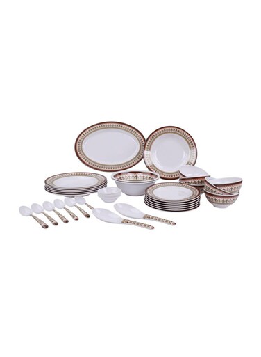 Delcasa 35-Piece Melamine Dinner Set White/Gold/Brown 14inch
