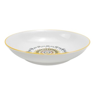 Made from high-quality ceramic, this soup plate features a light blue colour with a unique printed design. With a diameter of 20cm, it is the perfect size for serving a variety of soups and stews.
