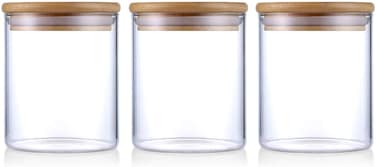 FUFU Glasss Coffee and Sugar Canister Set - Airtight Glass Storage Food Jars with Bamboo Lids, Kitchen Canisters Set of 3 (500ML/16oz)