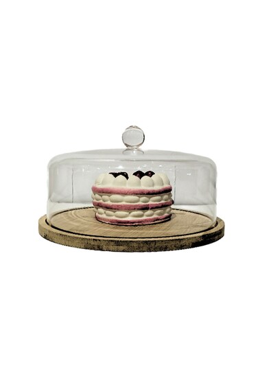 Lihan Acrylic Dessert Plate With Base, Wood Cake Tray 22X11Cm With Clear Acrylic Cover, Cake Fruit Display Server Tray For Kitchen, Birthday, Wedding, Appetizer Dessert (Round)