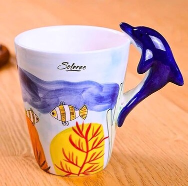 Solarae 3D Dolphin Mug (13.5oz). Hand-painted for all ages. Microwave safe