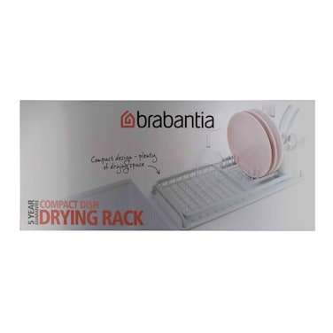 The Brabantia Compact Dish Drying Rack in Light Grey is a stylish and practical addition to any kitchen.