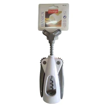 The Prestige Plastic Winged Corkscrew in White is a stylish and functional tool for opening wine bottles with ease. Its winged design provides extra leverage, making it simple to remove corks effortlessly. The plastic construction is durable and easy to clean, making it a practical addition to any kitchen or bar.