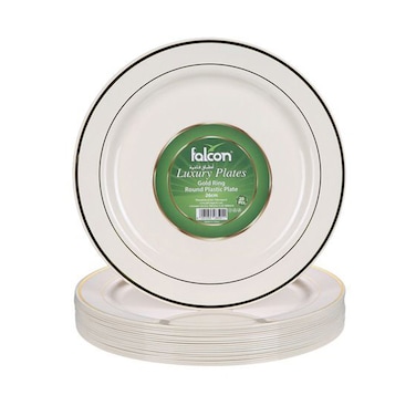 Falcon Gold Ring Round Plastic Luxury Plates White 26cm 20 PCS