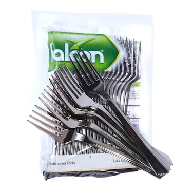 The Falcon Plastic Fork 26cm Silver 20 PCS is a pack of 20 disposable plastic forks.