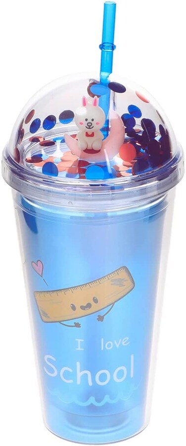 Fashion plastic Water Bottle Sipper Cup, 550ml Tumbler with Lid and Straw, Double Wall Travel Mug , Re-usable Water Cup (Blue)