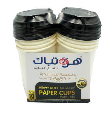 Hotpack Heavy Duty Paper Cup White With Black Lid 8 Ounce - 10 Pieces