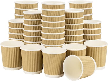 - <p><li>HIGHLIGHTS: 4 oz. Brown Disposable Ripple Insulated Coffee Cups – Cold and Hot Beverage Corrugated Paper Cups [500 Cups]<p><li>Package Included: Brown Ripple Cups, 500 Pcs <p><li>DESCRIPTION: Disposable Ripple Triple walled Paper Coffee Cup Brown Cups. Use this Cups to serve anything from signature hot and cold Beverages to your most hot sides and steamed veggies. The size makes it great for single servings, while the classic, round shape ensures that it's easy to hold and carry while on the go. <p><li>Key Features: The triple walled ripple design keeps the contents warmer for longer.<p><li> Brilliant for both home Party and commercial use. <p><li> The craft color gives a classic feel. The triple walled design gives extra insulation and also enhanced grip on the cup, the rolled rim makes it easier to seal the lid preventing those annoying spills.<p><li> Designed for hot/Coffee/Tea/Hot drinks and soup.<p><li> These Drink ripple walled cups are both functional and stylish and a simply the must have item for both business' and homes.<p><li>Package Included: Brown Ripple Cups, 500 Pcs<p><li>Color: Brown <p><li>Capacity: 4oz<p><li>Material: Paper Wood<p><li>Disclaimer: Due to the light and screen setting difference, the item's color may be slightly different from the pictures. Please allow slight dimension difference due to different manual measurement.<p><li>