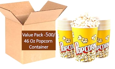 BULK PACK FOR CELEBRATIONS- This set includes 500 Pcs, 46oz disposable popcorn cups, ensuring an ample supply for large gatherings, kids' parties, and birthdays, offering convenience and cost-effectiveness.