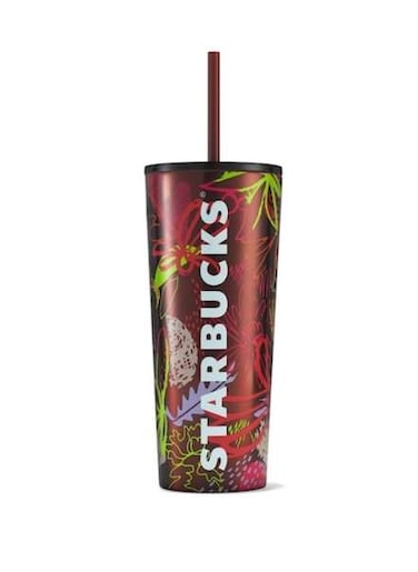 - Starbucks Tumbler Cold Cup Stainless Steel Autumn Abstract Ruby - 16oz (473ml)