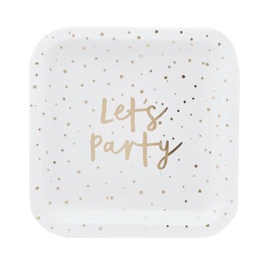 Gold 'Lets Party' Paper Plates 9in 8/Pack