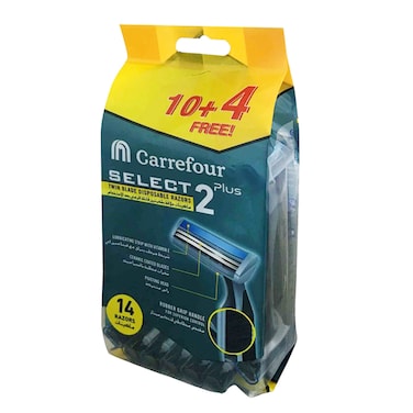 Carrefour Select 2 Plus Twin Blade Disposable Blue Razor 14 Razors