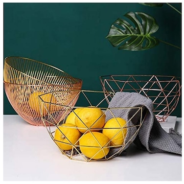 Aiwanto Creative Fruit Basket Bowl (3 Pcs) Metal Storage Container Centerpiece Display Bowl for Living Room Decoration and Modern Kitchen Table (Small - Paint Gold)