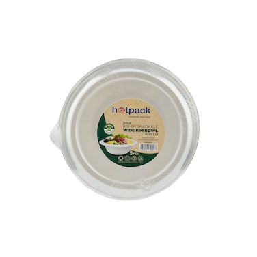 Hotpack Biodegradable Wide Rim Bowl 24 ounce with Lid, 5 Pieces