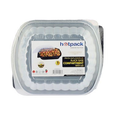 Hotpack Black Base Compartment with Lid, 5 Pieces