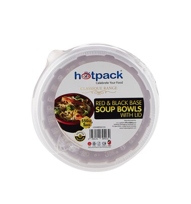 Hotpack Red & Black Base Soup Bowls 550ml with Lids, 5 Pieces