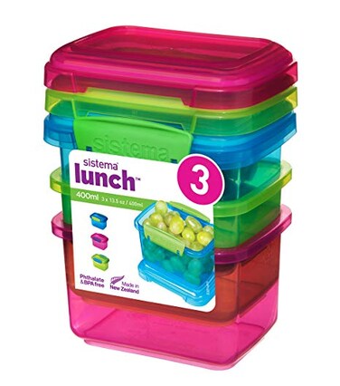 The Sistema® Lunch™ 200ml 3 Pack is perfect for transporting your snacks to work, school or the park while helping to cut down on using plastic bags, cling film and foil.Modular stacking shape ensures the most efficient use of space in the pantry, fridge and freezer.Sistema® easy-locking clips plus flexible seal keeps food fresher for longer.