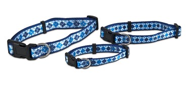 Petmate Aspen Pet Ribbon Overlay Dog Collar 3/4"X14-20" Harlequin Blue