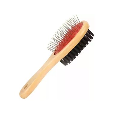 “PETBROO” COMBO DOG GROOMING BRUSH Small Nylon bristles Pin/Bristle combo Varnished wood handle Stainless steel pins Ideal brush to detangle a pet’s coat pins help to detangle the coat and bristles remove excess hair and debris.
