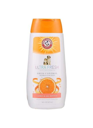 Freshen up your pet to the next level with Arm & Hammer Ultra Fresh grooming. Our Shed Control Shampoo with omega fatty acids & protein helps control shedding by reducing loose fur and dander all while providing sheen and luster to the coat. This deshedding dog shampoo is infused with baking soda to neutralize bad odors and remove impurities for an advanced clean. The creamy formula of this anti shed shampoo for dogs works into a rich, luxurious lather to reach every inch of your dog with an exhilarating sea mineral and citrus fragrance leaving your pet Ultra Fresh™ every time. Regular bathing is an important part of pet care; clean, fresh smelling dogs are more welcome in many places than dirty, smelly dogs. Bathe your dog just the way you'd like to - from head to tail - with Arm & Hammer Ultra Fresh shed control dog shampoo. Suitable for dogs of all ages, this shed control doggie shampoo is specifically designed to give your pet a clean, fresh smell. DIRECTIONS: Thoroughly wet the dog's coat with warm water. Apply shampoo and work into lather from the back of the ears to tail, being careful to avoid eyes. Rinse well.