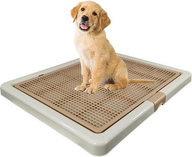 Dog Toilet for Training, dog potty training, Indoor Outdoor, Keep paws and floor clean, Small breed dog Toilet with tray, Portable, Easy To Clean, Reliable, Beige & Brown Colors, Small 66 Cm Length