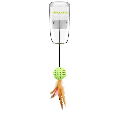 The cat treat dispenser will reward the cat for trying to grab the feather toy. Size (cm): L 6.8 x W 9.5 x H 14.4
