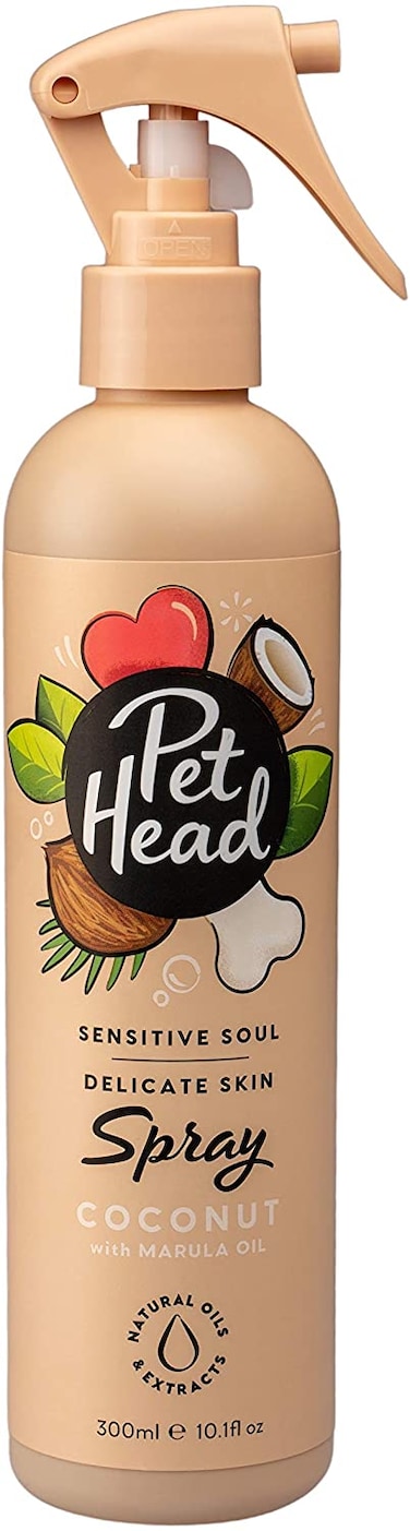 - Sensitive skin - A sensitive skin spray a day keeps dry skin at bay! Our coconut fragrance is a gentle one with a tropical fruity sweet note with some vanilla nuances. With Natural oil & Extracts - Our sensitive coconut spray is packed with oatmeal and marula oil, gently cleansing and calming delicate skin. Both Oatmeal and Calendula extract act as anti-inflammatory and soothing with their properties whilst Marula oil give that extra moisture and nourishing effect. Directions - Spray onto fur, brush out and towel dry for a best smelling pooch. No rinse needed. High quality ingredients - all Pet Head products are pH balanced, contain aloe vera & vegetable protein and are packed with natural and wholesome ingredients. All our fragrances are exclusive to Pet Head and were designed and formulated with rare & upmarket ingredients leaving your pooch smelling amazingly fresh & fruity.