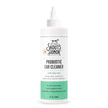 Skout's Honor Probiotic Dog Ear Cleaner uses natural, non-medicated ingredients to safely clean your canine companion’s ears. A cruelty-free formula that contains no sulfates, parabens, alcohol or fragrance restores harmony to your pooch’s ears by stabilizing the internal microbiome. Irritation and dryness are remedied to prevent scratching and odor while dirt is gently wiped away for healthier ears that feel soothed and ready to hear whatever fun trick you command!