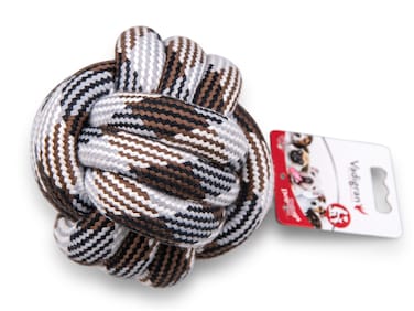 - 1. Cotton Ball: Large, sturdy ball toy designed for dogs. 2. Brown Color: Earthy brown color adds visual appeal. 3. Size: Measures Ø15cm in diameter, providing ample space for interactive play. 4. Weight: Weighs 485g, offering substantial durability for chewing and fetching activities.