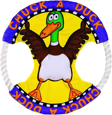 Set your dog out on a wild chase with these tough flyers. Fat Cat Dog Toy Rings are especially made tough for high flying. They give dogs a good chase by providing a good dose of exercise for their body and mind. Dog Toy Rings are designed with triple-stitched seams, heavy duty rope and canvas for long-lasting use. They fly, are soft and flexible. High-flying characters include Chuck-A-Duck or Hurl-A- Squirrel in the classic size or Hurtle-A-Heifer and Wham-A-Ham in the mini size, to keep any size dog soaring for the stars.