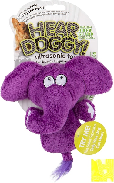 - <p>The best toy to have while working alongside your dog, either at home or in the office. Our HEAR DOGGY! Mini Flatties are the perfect noiseless dog toys. All the fun of a traditional squeaker HEAR DOGGY! squeakers are tuned an ultrasonic frequency between 24 and 28 KHz that is silent to people but not dogs. This colorful, soft and silly, under stuffed dog toy is perfectly sized for the smaller breeds. These soft plush toys are made more durable with Chew Guard Technology which is a special manufacturing process that adds a super tough and durable lining to soft plush toys. <p>HEAR DOGGY! gives pet parents the best of all worlds: innovative products, stylish designs, environmental responsibility, and exceptional value with a variety of plush silent squeaker toys to meet a dog's needs for play, fun and a pet Parent's need for quiet! HEAR DOGGY! products are designed to meet child safety standards and are backed by our 100% satisfaction guarantee. If a customer is dissatisfied with a HEAR DOGGY! product for any reason, we will replace or refund it. Read all packaging instructions, warnings and cautions upon receipt. Packaging contains small parts, discard after opening.
