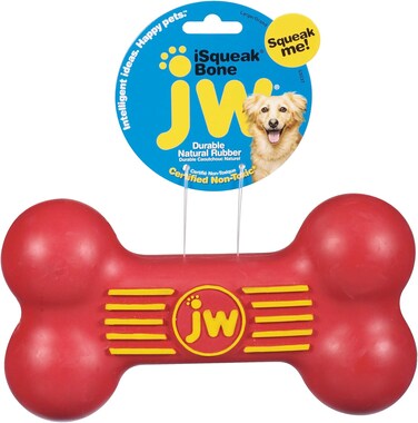 Fun with fetch: This washable rubber bone for dogs features a long-winded squeaker that keeps pups engaged. Great size & shape for toss & fetch outdoors.