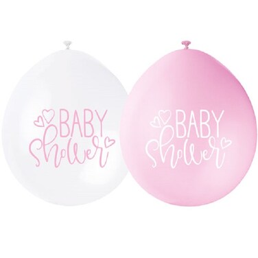 10 Pack 9" Baby Shower Pink & White Balloons